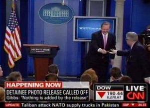 據(jù)美國媒體5月13日報道,白宮13日中午舉行的新聞發(fā)布會進行的很激烈,美國有線電視新聞網(wǎng)記者埃德-亨利、美國廣播公司記者杰克-塔皮爾和其他記者紛紛對白宮發(fā)言人吉布斯提出尖銳問題,質疑奧巴馬總統(tǒng)13日作出的將設法阻止公布美軍虐囚照片的決定。不過,發(fā)布會的緊張氣氛由于手機鈴聲多次響起而得以在短時間內(nèi)得到緩解。