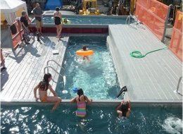 據(jù)臺灣《中國時報(bào)》報(bào)道,這座游泳池位在紐約市布魯克林區(qū)歌瓦努斯運(yùn)河河畔,共有三個池子,全是由垃圾收集箱改造而成,泳池旁邊有一片平臺,放著幾張海灘椅和烤肉架,還附設(shè)一個淋浴間。從7月4日開幕以來,已經(jīng)舉辦過烤肉、電影試映和攝影等活動,許多紐約藝文界人士趨之若鶩。