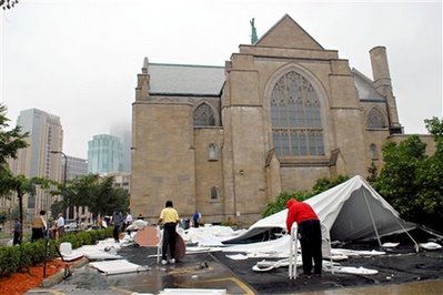 在明尼蘇達(dá)州明尼阿波利斯最大的教堂,大風(fēng)吹襲時有120人正在舉行活動,目擊者看到大風(fēng)好似一堵墻,呼嘯而過,人們在教堂內(nèi)尋找安全角落進(jìn)行躲避,所幸沒有人員受傷。
