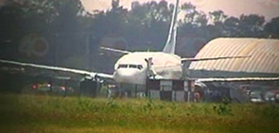 在進(jìn)行徹底搜查后,警方在飛機(jī)上發(fā)現(xiàn)了用膠帶包裹的疑似爆炸物,他們馬上安排專家實(shí)施現(xiàn)場(chǎng)爆破。電視畫面顯示爆炸極其輕微,沒有對(duì)附近物品造成任何損害。爆破專家隨后又對(duì)現(xiàn)場(chǎng)進(jìn)行了仔細(xì)勘查。