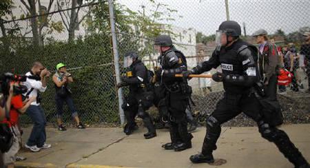 據(jù)路透社報(bào)道,匹茲堡的Bloomfield區(qū)發(fā)生千人游行示威,到晚高峰時(shí)間,抗議人數(shù)減少到300人,有些示威者向警方投擲石塊。Bloomfield距離峰會(huì)會(huì)場(chǎng)約有1.6公里,該地區(qū)的Boston Market餐廳、肯德基、寶馬經(jīng)銷店和富達(dá)銀行的窗戶等被游行隊(duì)伍砸壞。