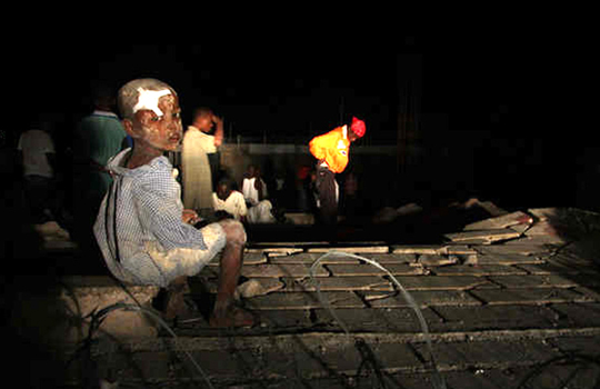 酒店外的一名當?shù)刂驹刚咴噲D救助更多的傷員和無家可歸者,但他表示:“這基本是無法完成的任務!