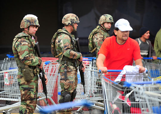 雖然智利政府已開始免費(fèi)發(fā)放食品,但由于大規(guī)模救援遲遲未能展開,2月28日和3月1日,康塞普西翁兩度發(fā)生大規(guī)模哄搶現(xiàn)象,搶掠者甚至放火燒了一家超市。