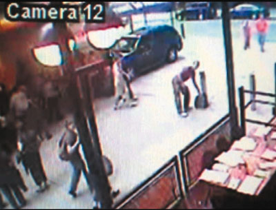 紐約警方在距現(xiàn)場半個(gè)街區(qū)的閉路電視錄影中,發(fā)現(xiàn)一名懷疑是疑兇的白人男子。片段中,男子一邊回頭望向涉案日產(chǎn)Pathfinder的方向,一邊脫掉深色T恤,露出里面的紅色T恤,然后將深色T恤放入手提包后離開。