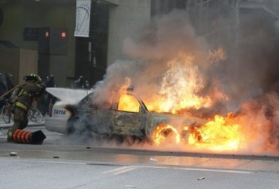 據(jù)悉,約2000名示威者前日在多倫多街頭游行,有示威者與防暴警察沖突,2人被捕!(jù)電視臺(tái)記者稱(chēng),示威者向警察投擲物件。一輛警車(chē)被焚毀。示威組織者說(shuō),將有5000到1萬(wàn)人參加峰會(huì)期間的示威和抗議活動(dòng)。