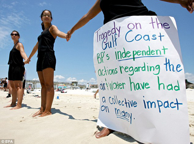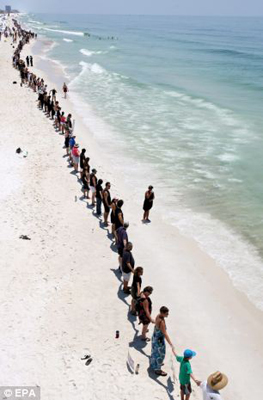 中新網(wǎng)6月27日電 綜合外媒報道,美國數(shù)百名群眾日前在佛羅里達州海岸手拉手排成“人鏈”,抗議英國石油公司經(jīng)營的墨西哥灣油井泄漏事件。