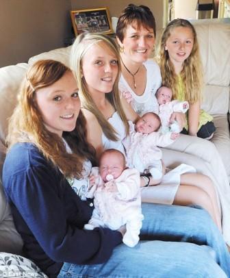 中新網(wǎng)5月14日電 據(jù)英國(guó)媒體13日?qǐng)?bào)道,英國(guó)媽媽戴爾在生了一對(duì)雙胞胎女兒,以及另外一女后,最近又誕下三胞胎女兒。而更少有的是,戴爾誕下的三胞胎來(lái)自兩個(gè)卵子。這一家猶如中大獎(jiǎng),因?yàn)檫@樣的生育幾率,百萬(wàn)家庭中才有一個(gè)。