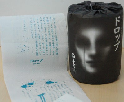 這篇印在衛(wèi)生紙上的恐怖小說為鈴木光司的新作《Drop》,共9章,內(nèi)容恰好是發(fā)生在公共廁所里的故事。為配合人們通常每次如廁用紙約80厘米的使用量,在80厘米長的衛(wèi)生紙內(nèi)印有差不多2000字,正好可在幾分鐘內(nèi)讀完。