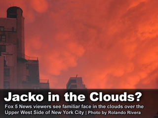 中新網(wǎng)6月30日電 美國紐約26日下了一場(chǎng)大雷雨,在下雨之前,天空出現(xiàn)罕見的紅色云朵,許多紐約客紛紛走到戶外,觀看這個(gè)大自然奇景。對(duì)于云的形狀,有人說像是外星人來了,更有人繪聲繪影地說,在云朵中看到25日去世的流行音樂天王杰克遜。