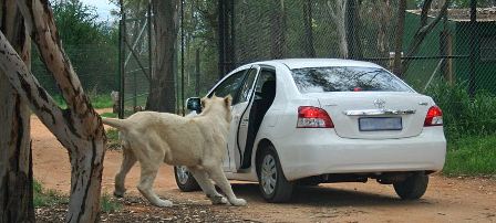 據(jù)報道,在南非約翰內(nèi)斯堡野生獅子動物園,一輛白色豐田車的車主粗心大意,沒有按照園方叮囑鎖好車門,結(jié)果真的讓一頭獅子“盯上”了。這只重約136公斤的獅子走近汽車,用嘴來回摸索,竟然用牙齒咬住了車門的把手,將車輛左后方的車門拉開了。而車主尚在車內(nèi),被嚇得一動也不敢動,完全驚呆了,像是難以置信。