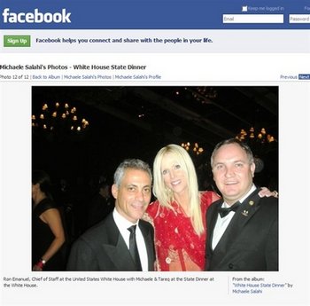 報(bào)道表示,薩拉希夫婦二人在宴會(huì)上落落大方,毫不心虛,他們先后與美國副總統(tǒng)拜登、白宮幕僚長、海軍陸戰(zhàn)隊(duì)高官、美國哥倫比亞電視臺(tái)知名主播以及美國廣播公司電視臺(tái)主持人親密合影。在一張照片中,副總統(tǒng)拜登還挽著薩拉希夫人的手。薩拉希夫婦事后將照片放上社交網(wǎng)站Facebook大肆炫耀,令白宮顏面無存。