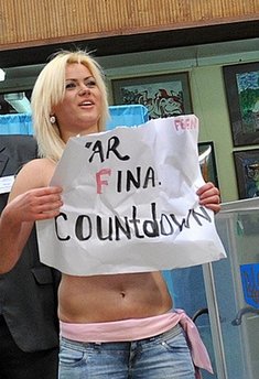這4名女子在零下低溫中裸露上身,關(guān)鍵部位用膠條粘住防止走光。不過,即使如此,選監(jiān)官員還是被她們突如其來的舉動弄得面紅耳赤。她們拉開寫著“別再強(qiáng)奸我們的國家”的橫幅,高喊口號,進(jìn)行抗議。她們稱呼吁選民“不要出賣選票”。