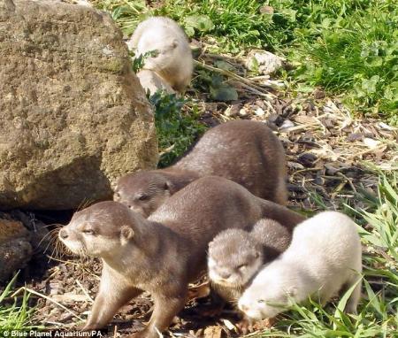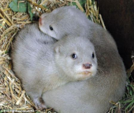 藍(lán)色星球水族館經(jīng)理湯姆.康威爾(Tom Cornwell)表示,一般情況下,動物寶寶應(yīng)該會有與父母相同的體貌特征,但這兩只白色水獺寶寶的父母皮毛都為黑棕色。