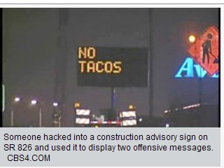 公路旁的電子廣告牌,應(yīng)該是提供交通信息,但邁阿密這條公路旁的廣告牌,卻出現(xiàn)了“不要拉美人士”、“不要玉米餅”的字樣,原來(lái)是這個(gè)廣告牌遭到黑客入侵,惡意竄改了顯示的的字樣。