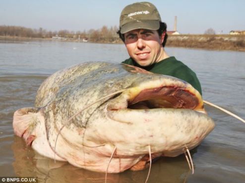 這條大鯰魚(yú)是在附近數(shù)名漁民的幫助下,花了45分鐘才共同釣上來(lái)的。它身長(zhǎng)8.2英尺(合約2.46米),重量達(dá)到驚人的250磅(合約226斤)。這條魚(yú)打破了之前歐洲最重鯰魚(yú)的紀(jì)錄,當(dāng)時(shí)那條在法國(guó)捕獲的鯰魚(yú)體重是246磅14盎司。