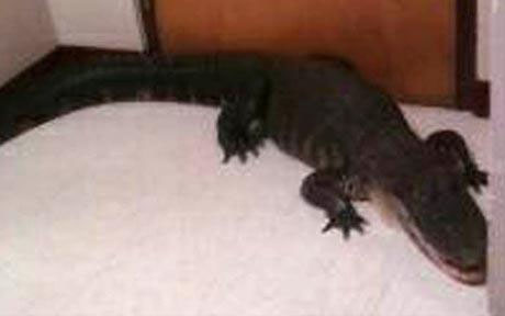 這只鱷魚當(dāng)?shù)貢r間7日上午大搖大擺的現(xiàn)身佛羅里達(dá)坦帕市一所中學(xué)自助餐廳。教職員工設(shè)法將鱷魚引到男廁所,之后鎖上門等待野生動物保護(hù)人員到來。