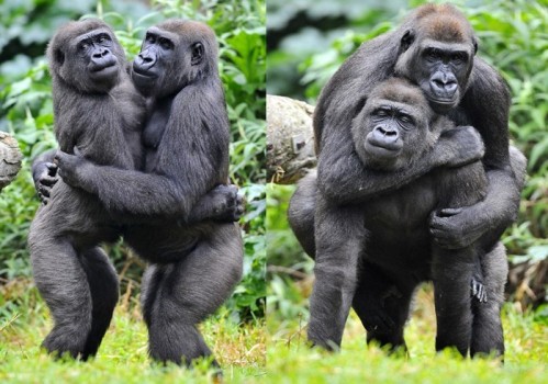 在猩猩的禮節(jié)中,似乎握手不是很受歡迎的動(dòng)作,擁抱才能表達(dá)它們的感情。初次見面時(shí),猩猩會(huì)在地上快速旋轉(zhuǎn),來(lái)表達(dá)對(duì)同伴的問候。母猩猩還會(huì)迅速做出一些復(fù)雜的動(dòng)作。