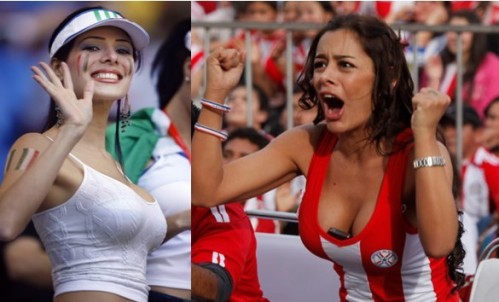 不過,除了這些美女,世界杯賽場的女球迷也以一些令人匪夷所思的造型出現(xiàn)在公眾面前。報道指出,以日本女球迷為例,全身“裹粽子”般包得緊緊地,如同將相撲的服裝穿在身上,令人看不懂她們追求的效果是什么?瓷先ィ齻兊脑煨拖袷恰鞍踩住,又像是保齡球瓶,和足球賽仿佛搭不上調(diào)。不過,唯一能確定的是,她們在冬天的南非應該不會受涼。