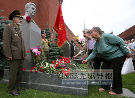在去年的一次全國(guó)民調(diào)中,斯大林被評(píng)為俄歷史上第三大最得人心的人物。就在最近,莫斯科市中心地鐵站的大理石大廳里出現(xiàn)了贊美斯大林的鍍金文字。也有西方媒體評(píng)論說(shuō),克里姆林宮意圖重塑蘇聯(lián)時(shí)代的大國(guó)聲譽(yù),而使蘇聯(lián)邁上工業(yè)化道路進(jìn)而成為美國(guó)的強(qiáng)勁敵手,以及領(lǐng)導(dǎo)蘇聯(lián)紅軍戰(zhàn)勝德國(guó)法西斯的正是斯大林。