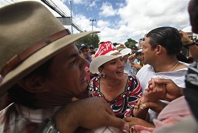 中新網(wǎng)7月9日電 洪都拉斯第一夫人在躲藏十天之后現(xiàn)身,雖然她害怕自己參與群眾示威可能會(huì)遭遇不測(cè),不過為了丈夫的權(quán)益,她決定站出來。