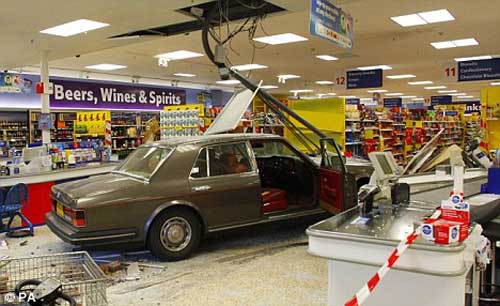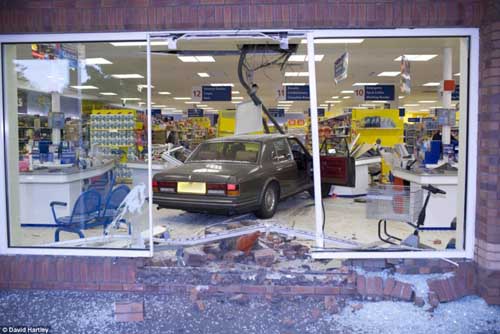 但沒想到這名醉漢竟返回停車場,發(fā)動他的勞斯萊斯豪華轎車徑直向超市沖去。