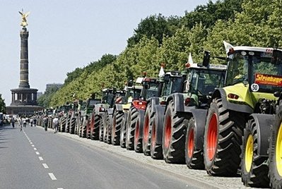 據(jù)香港《文匯報(bào)》報(bào)道,在法國(guó),多達(dá)1.2萬(wàn)名奶農(nóng)封鎖全國(guó)81家乳制品加工廠入口、德國(guó)6000名奶農(nóng)駕駛700部拖拉機(jī)到柏林示威、1000名來(lái)自法、德、比利時(shí)等10國(guó)的奶農(nóng)則在歐盟總部布魯塞爾堵塞道路。雖然法國(guó)政府任命專員調(diào)停奶農(nóng)及加工商,但工會(huì)揚(yáng)言要將示威浪潮擴(kuò)展到整片歐洲大陸。