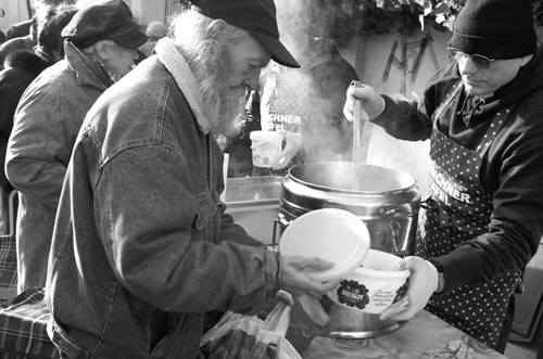 記者曾經(jīng)采訪過法蘭克福的一個“流浪者之家”。據(jù)負責人介紹,當?shù)氐臋C構(gòu)通常情況下每天能接待100-150人,其中有50名流浪者。記者采訪時,隔壁一間并不寬敞的房間里就有3個正在邊吃面包邊閱覽報紙的流浪漢,一個頭發(fā)蓬亂的男青年吃完一份快餐后,披上破舊的毛毯拉門而去,就像走出自己的家門一樣。