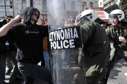 中新網(wǎng)2月25日電 據(jù)香港《大公報》報道,希臘警方星期三(24日)在雅典市中心向示威者發(fā)射催淚氣并與示威者發(fā)生沖突。這場釀成暴力的示威,旨在抗議政府為了挽救債務危機而采取的緊縮措施。