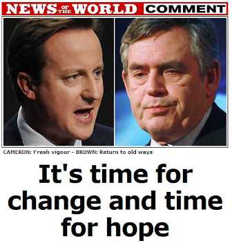 該報(bào)說(shuō),經(jīng)過(guò)深思熟慮,《世界新聞報(bào)》相信卡梅倫和他的保守黨應(yīng)當(dāng)被給予執(zhí)政的機(jī)會(huì),“眼前,他們(保守黨)寄托著我們對(duì)光明、合理、安全和更有榮譽(yù)的未來(lái)。”