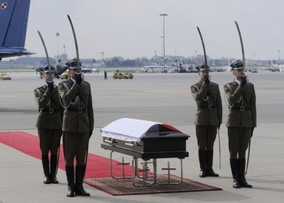 10日卡欽斯基乘坐專機(jī)從華沙飛往俄羅斯斯摩棱斯克市,參加卡廷森林事件70周年紀(jì)念活動。飛機(jī)在斯摩棱斯克軍用機(jī)場附近降落時失事,造成包括卡欽斯基夫婦及眾多政府高官在內(nèi)的96人死亡。