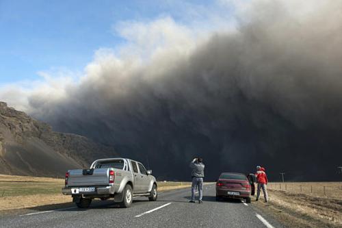 正在冰島觀察火山爆發(fā)的荷蘭氣象學家埃德溫•詹尼表示:“現(xiàn)在,我們距離火山口大約有25公里遠,正在觀察一個灑滿陽光的冰蓋。它的上空有一片高達4公里至5公里的火山灰云柱,這簡直是真正的地獄……”