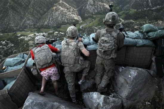 美聯(lián)社的一名攝影記者抓拍的一張照片顯示,19歲的陸軍專業(yè)軍士扎查里伊-波伊德在位于阿富汗庫(kù)納爾省科里加爾山谷的雷斯特雷波火力基地內(nèi)進(jìn)入防御陣地,基地當(dāng)時(shí)遭到了塔利班的火力射擊。他當(dāng)時(shí)穿著一件四角內(nèi)褲,內(nèi)褲上印著彩紅色的“我愛(ài)紐約”字樣!都~約時(shí)報(bào)》12日在其頭版刊登了這張照片。