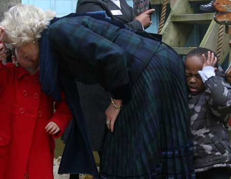 中新網(wǎng)11月21日電 11月19日似乎是卡米拉的“黑色星期四”,在一天之內(nèi)頻頻出丑,首先是用屁股不小心撞到一個(gè)3歲男童的腦袋,這個(gè)小男孩很不給面子,當(dāng)場哇哇大哭;接著在出席圣誕燈飾雕像的亮燈儀式時(shí),她又因用力過猛,竟然將繩子拉斷。