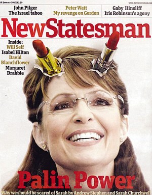 美國前阿拉斯加州州長、2008年總統(tǒng)大選副總統(tǒng)候選人薩拉·佩林被稱為共和黨的“黷武主義者”。日前佩林遭英國左翼雜志《新政客》惡搞,封面照片中佩林變身惡魔,頭上長出“口紅雙角”。