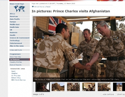 據(jù)報(bào)道,查爾斯25日直入塔利班活動(dòng)較為頻繁的阿富汗南部赫爾曼德省,慰問駐扎在當(dāng)?shù)氐挠④娛勘。這是阿富汗戰(zhàn)爭以來查爾斯首次慰問駐阿前線官兵。