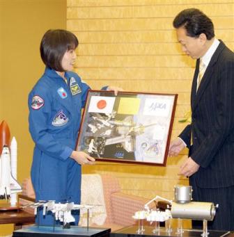 中新網(wǎng)5月21日電 據(jù)日本新聞網(wǎng)報(bào)道,從宇宙空間站返回不久的39歲日本美女航天員山崎直子20日下午到首相官邸,向日本首相鳩山由紀(jì)夫作匯報(bào)。鳩山說(shuō)了一句話(huà),讓山崎差一點(diǎn)昏倒。鳩山問(wèn)山崎“日本為什么不開(kāi)發(fā)載人宇宙飛船”,而報(bào)道指出這句話(huà)應(yīng)該是山崎反問(wèn)鳩山才對(duì)。