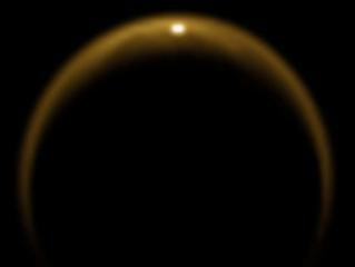 由于土衛(wèi)六上空厚厚的大氣層的干擾,土衛(wèi)六表面所反射的太陽光大多數(shù)都被遮蔽。“卡西尼號(hào)”探測器也是在偶然間拍下了這張罕見的照片。照片拍攝于2009年7月8日。