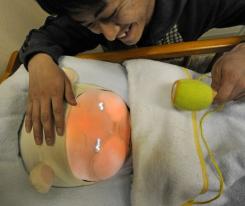 中新網(wǎng)3月10 日電 據(jù)外電10日報道,日本近日推出一款新型機(jī)器人“嬰兒”。這個被昵稱為“太郎”的機(jī)器嬰兒在人們輕輕搖擺或者撫摸它時,會發(fā)出咯咯的笑聲,并做出搖手晃腳的可愛姿態(tài),但它也會像真正的嬰兒那樣發(fā)出任性的哭聲。
