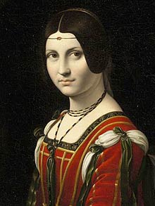 喬治接著解釋道,歷史上曾有兩幅文藝復(fù)興時期的肖像被冠名以《La belle ferronnière》之名。第一幅就是現(xiàn)在看到的這幅,它有時也被稱作《不知名婦女的肖像》,畫中人有可能是盧克雷齊亞·克里韋利,是米蘭公爵盧多維科·斯福扎的一個情婦,曾收藏此畫的盧浮宮將此畫歸為達芬奇畫派的作品,認為它可能出自達芬奇之手也可能是由達芬奇的某一名學(xué)生所畫。另一幅肖像畫畫的是切奇莉亞·加勒蘭妮,她是盧多維科的另一個情婦,那幅畫幾乎可以確定就是達芬奇的作品,它也常被稱作《抱貂的女士》。