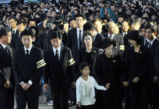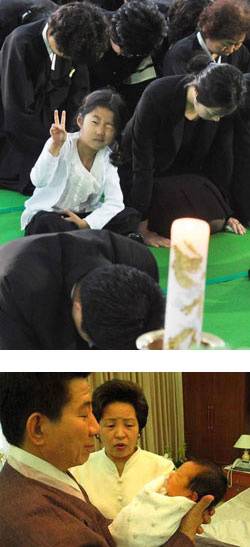 當時,盧武鉉的孫女盧緒恩(音)似乎并不知道爺爺去世,顯得天真無暇,這更使旁邊人悲痛萬分。發(fā)喪時,天真的小緒恩坐在權(quán)良淑女士旁邊向遺像做出“V”型手勢。
