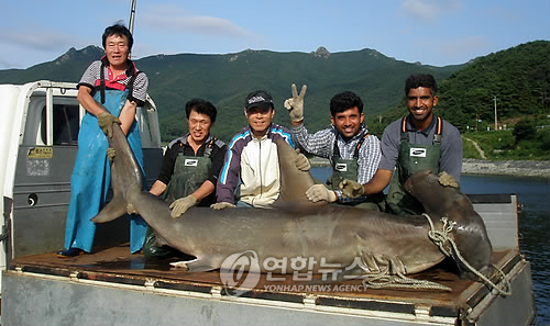 韓國國立水產(chǎn)科學(xué)院資源研究科博士金正年(音)表示:“錘頭雙髻鯊和大白鯊非常兇猛。最近在釜山共同海鮮市場經(jīng)常能夠見到賣鯊魚的攤位!薄半S著周邊海域海水變暖,鯊魚出沒現(xiàn)象往后還會日益頻繁!