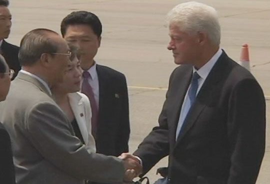 韓聯(lián)社注意到:克林頓在與金正日舉行會談時表情始終嚴(yán)肅,相反金正日卻面帶微笑,兩者形成鮮明對比。