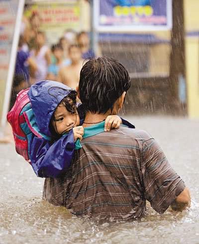 中新網(wǎng)9月27日電 熱帶風(fēng)暴“凱薩娜”昨日凌晨吹襲菲律賓北部呂宋島,首都大馬尼拉地區(qū)多處暴雨成災(zāi),該巿出現(xiàn)逾42年來(lái)最嚴(yán)重水災(zāi),幾乎變成澤國(guó)。香港文匯報(bào)報(bào)道稱,近60人死亡,逾1800人疏散,政府宣布馬尼拉和25個(gè)省進(jìn)入“災(zāi)難狀態(tài)”。香港天文臺(tái)預(yù)料“凱薩娜”將于未來(lái)數(shù)天橫過(guò)南海北部,并逐漸增強(qiáng),周初華南沿岸將風(fēng)勢(shì)頗大及有雨。