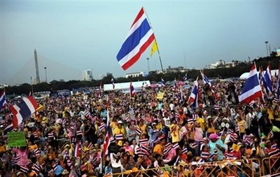 中新網(wǎng)11月16日電 據(jù)新加坡《聯(lián)合早報(bào)》援引外電報(bào)道,泰國(guó)“黃衫軍”大約2萬(wàn)名成員15日傍晚在曼谷皇家田廣場(chǎng)聚集,抗議前首相他信到柬埔寨訪問(wèn),以及他信接受英國(guó)《泰晤士報(bào)》訪問(wèn)時(shí)冒犯泰王蒲眉蓬的言論。