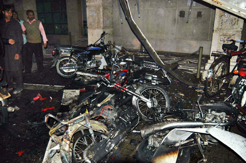 爆炸發(fā)生在拉合爾一個名為“月亮”的市場內(nèi)一所警察局外。爆炸導(dǎo)致鄰近多間商鋪和一家銀行起火,一些停在附近的車輛或被炸毀,或被引燃。爆炸還導(dǎo)致該地區(qū)電力供應(yīng)中斷。兩次爆炸僅相隔30秒鐘。
