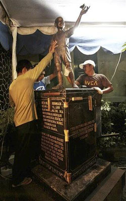 報(bào)道稱,銅像此前安放在雅加達(dá)的一座公園,但由于遭到公眾的反對(duì)才被重新安置在他曾經(jīng)就讀過的學(xué)校,校方的領(lǐng)導(dǎo)和當(dāng)?shù)氐慕逃賳T為這座銅像舉行了簡(jiǎn)短而又低調(diào)的揭幕儀式。