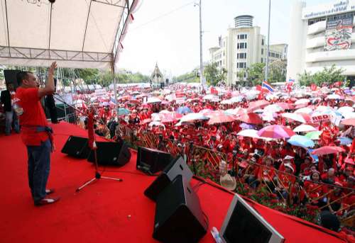 從十四日上午十時(shí)開始,素蓬、乍都蓬等紅衫軍領(lǐng)導(dǎo)人輪番登場(chǎng)發(fā)表演講,不時(shí)贏得臺(tái)下紅衫軍的陣陣掌聲與喝彩。