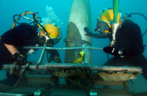 該物體距離最初發(fā)生爆炸的地點(diǎn)距離為40米至50米,在水下40米深處。