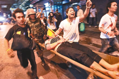 中新網(wǎng)4月23日電 據(jù)香港《文匯報(bào)》報(bào)道,泰國反政府紅衫軍聚集在首都曼谷市中心,用削尖的竹枝和車胎自制防衛(wèi)欄,保護(hù)示威營地,成為了泰國軍警的“禁區(qū)”,卻出乎意料地成為了“旅游景點(diǎn)”,好奇的游客爭相拍照留念。