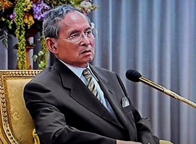 據(jù)報(bào)道,普密蓬在醫(yī)院住院七個(gè)多月,他在醫(yī)院發(fā)表講話,指法官應(yīng)建立榜樣,展示官員有能力維護(hù)和平。泰國(guó)總理阿披實(shí)近期備受批評(píng),指其未能平息“紅衫軍”示威,恢復(fù)國(guó)家秩序。普密蓬沒有直接談?wù)撜c“紅衫軍”抗議者之間的僵局,而是要求法官們?cè)诼男新氊?zé)時(shí)樹立榜樣。